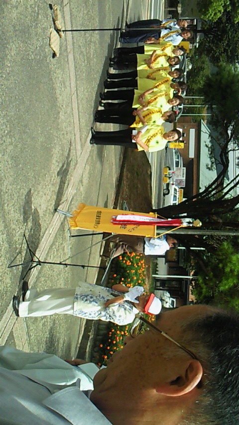 交通安全啓発全国キャラバン隊メッセージ伝達式が9月2日湖南市役所前で、交通事故根絶を願って岐阜県から滋賀県に引き継がれました。